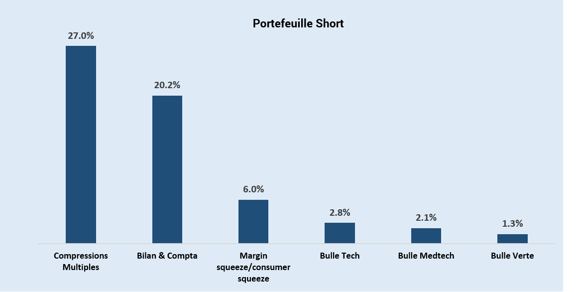 Le premier panier sur lequel nous investissons à la baisse est composé des 100 entreprises les plus chères d’Europe. Nous devrions ainsi profiter de la baisse des multiples de valorisation que nous attendons.